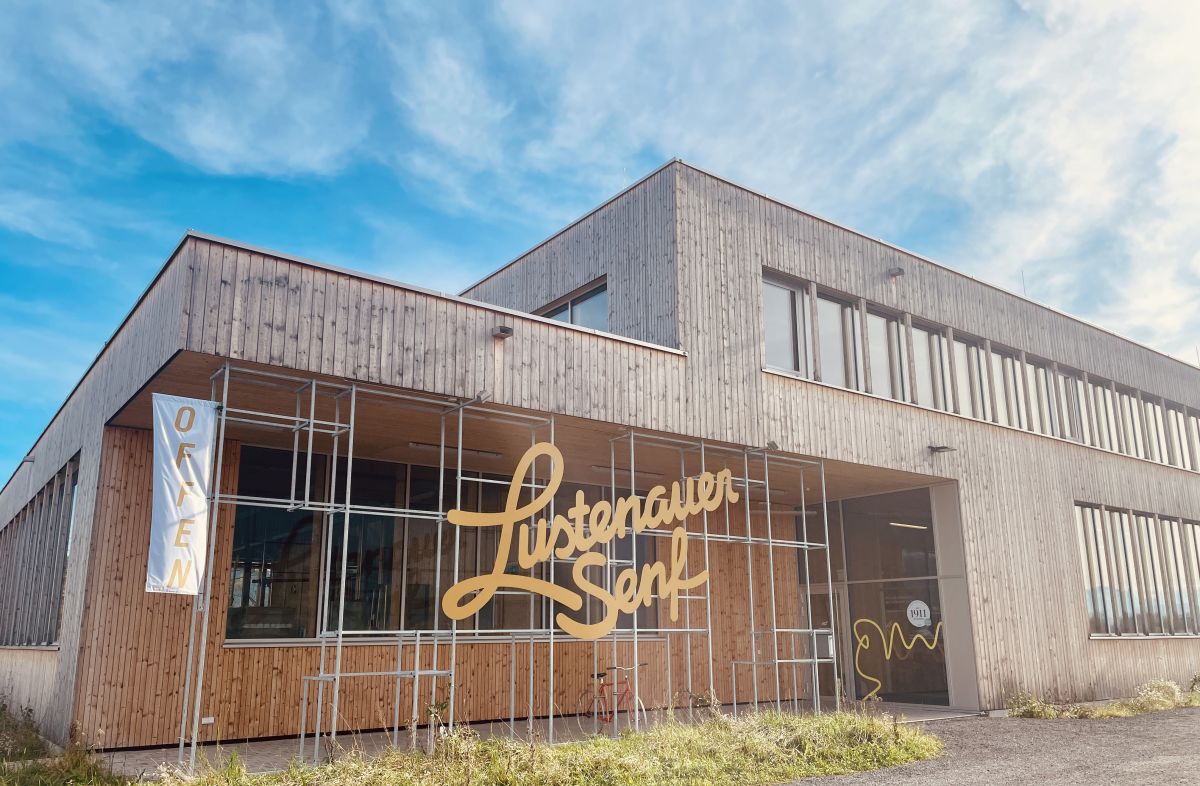 Gemeinsam mit Vorstandsmitglied und W*ORT Geschäftsführerin Gabi Hampson besuchte unsere Geschäftsführerin Mirjam Steinbock den Betrieb, um das Gespräch mit Stefan und Felix Bösch zu führen. Das 2024 neu eröffnete Gebäude besteht mit Produktionsstätte, dem Senfladen, dem Büro, der offenen Küche mit Sitzbereichen und dem Senfmuseum und riecht mehr nach Holz als nach Senf. Die Optimierung der Räumlichkeiten entstand in Zusammenarbeit zwischen Senfer:innen und Architekt:innen. "Entstanden ist ein Baukörper, der weit über einen Gewerbebau hinaus geht. Durchblicke, Einblicke und Transparenz zeigen ehrlich und einfach, wie ein Lebensmittel entsteht", so Die Architektin Julia Kick erläuternd.