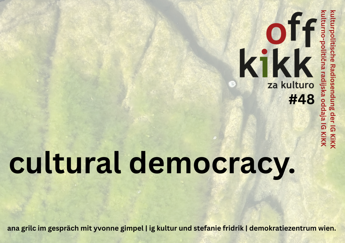 Koncept »kulturne demokracije« obravnava vprašanja dostopnosti kulturnih ponudb, pravičnega dostopa do kulturnih virov in subvencij ter povezave med politično in kulturno participacijo. Skupaj z urednicama nove tematske številke revije IG Kultur, Yvonne Gimpel in Stefanie Fridrik, oddaja KIKK OFF za kulturo razpravlja o konceptu »kulturne demokracije« in njegovi praktični dimenziji v Avstriji in zunaj nje.